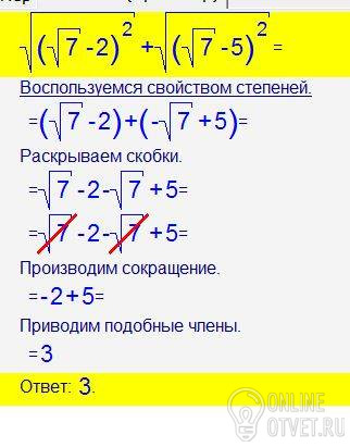 1)корень(корень из 7-2)во второй степени + корень (корень из 7-5)во второй степени