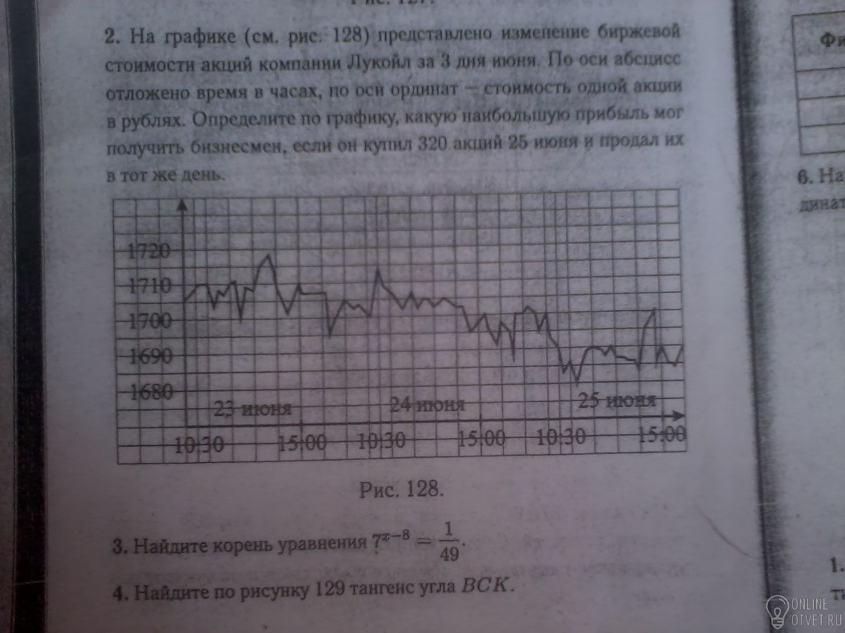 ..На графике(рис.126) жирными точками показано изменение биржевой стоимости акций газодобывающей компании в период с 6 апреля по 29 июня.по горизонтали указываются даты,по вертикали-цена одной акции в рублях.для наглядности жирные точки соединены линией.Весной бизнесмен купил пакет акций по наибольшей цене 140 рублей за акцию,а потом продал все свои акции по наибольшей цене за весь этот период.В результате этих операций прибыль составила 13860 рублей.Сколько акций было в пакете? и если не сложно посмотрите 2-ой график))