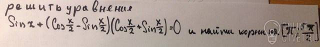 Sinx+(cosx/2-sinx/2)(cosx/2+sinx/2)=0 (можно заметить, что то все злое выражение в скобках собереться по формуле разность квадратов, получим:)