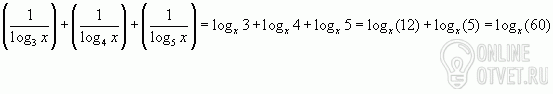 (1/log3x)+(1/log4x)+(1/log5x) x не равен одному