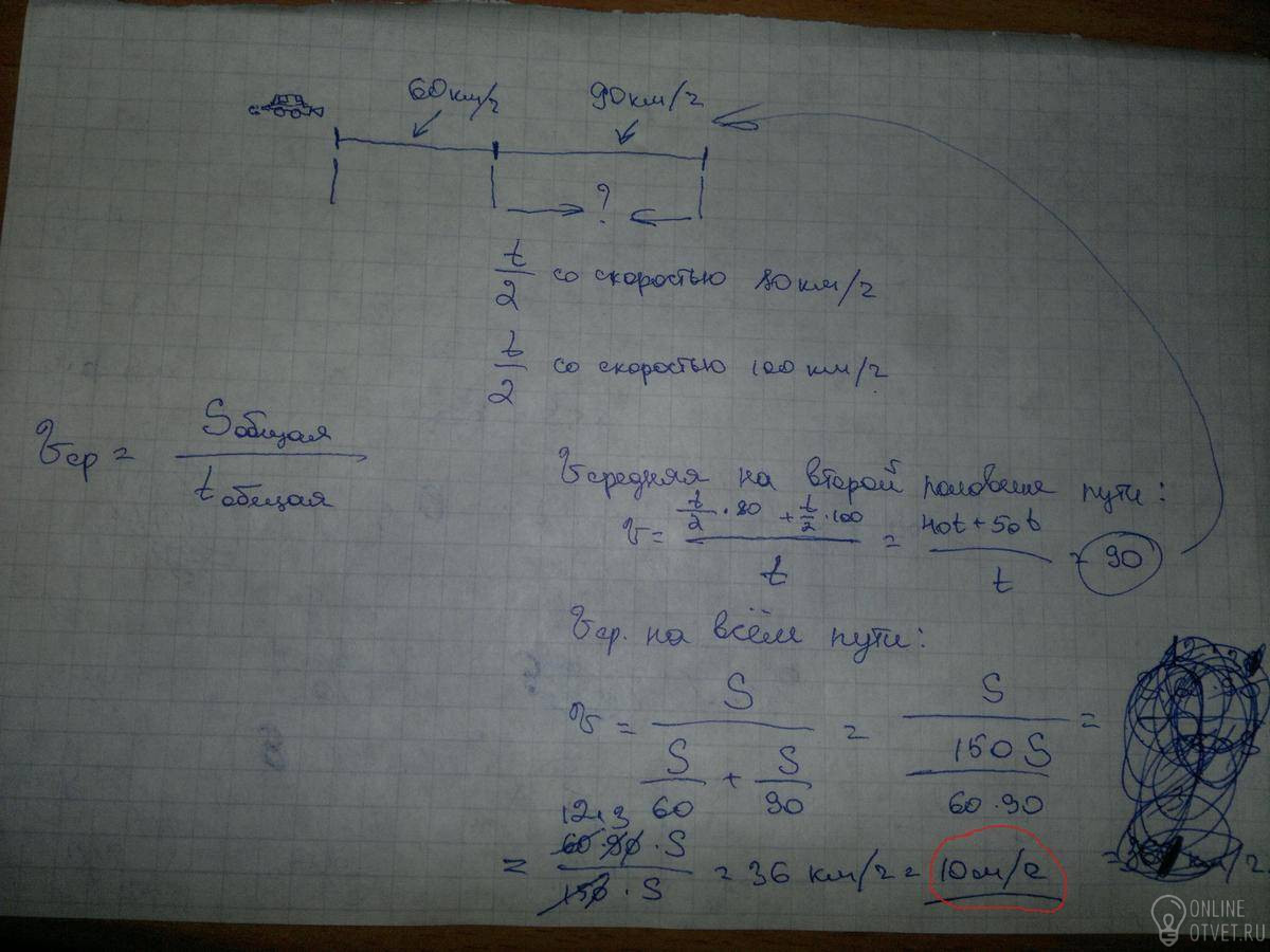 Автомобиль проехал первую половину пути со скоростью 60 км / час. Оставшийся путь, половину времени он ехал со скоростью 80 км / ч, а вторую половину времени - со скоростью 100 км / час. Найти в километрах в час среднюю скорость движения автомобиля.
