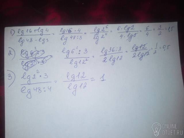 Помогите решить логарифмы c пояснением : 1) (lg 16 + lg 4) / (lg 48 - lg 3)