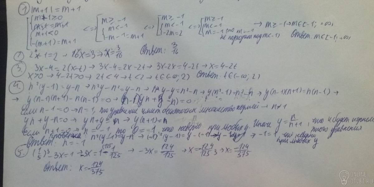 1.При каких значениях m верно равенство: |m+1|=m+1?