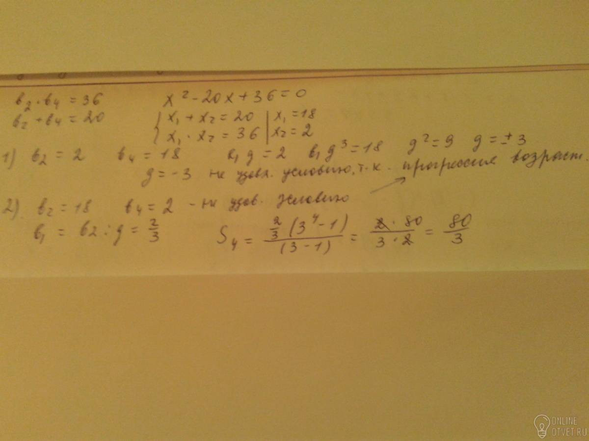 bn-возрастающая геометрическая прогрессия. b2b4=36,b1>0,b2+b4=20.