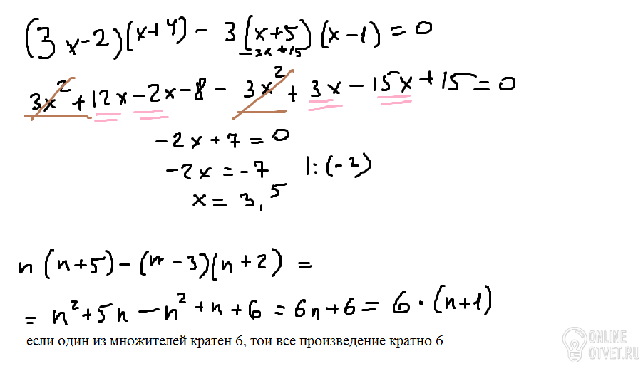 Докажите,что:при любом значении n значения выражения n(n+5)-(n-3)(n+2) кратно 6.