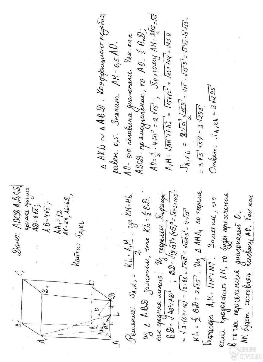 . Высота призмы равна 12. найдите площадь сечения призмы плоскостью, проходящей через вершину А1 и середины ребер АВ и АD