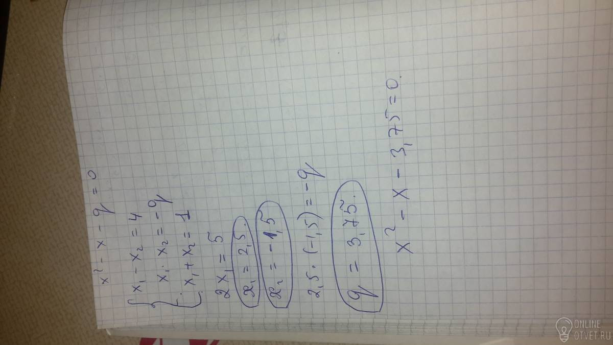 Люди,кто хорошо знает алгебру? Срочно нужна помощь! Буду благодарна!Разность корней квадратного уравнения x в квадрате - x - q = о равна 4. Найдите корни уравнения и значение q.
