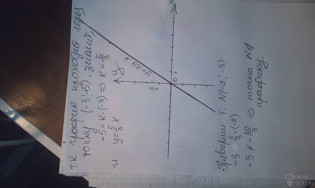 Постройте график y=kx, если он проходит через точку Р(-3;-5). Проходит ли этот график через точку N(-2;-3)
