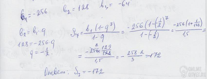 Выписаны первые несколько членов геометрической прогрессии: -256, 128, - 64 найдите сумму первых семи её членов