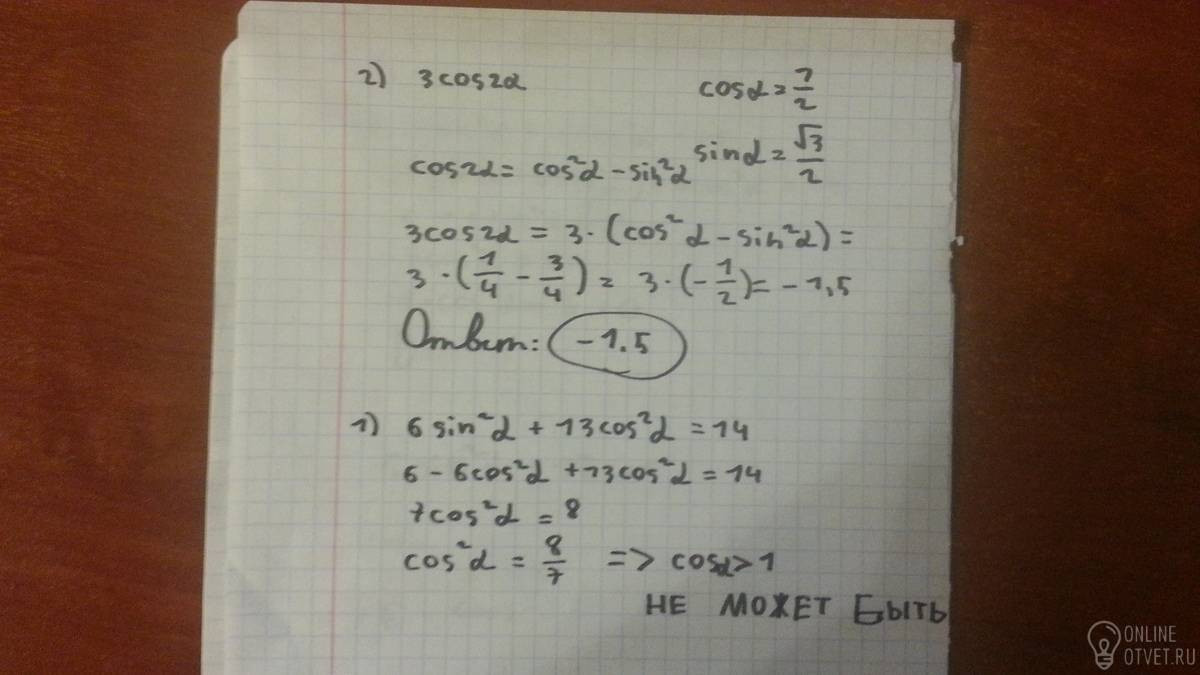 6 sin^2 альфа+ 13 cos^2 альфа=14.
