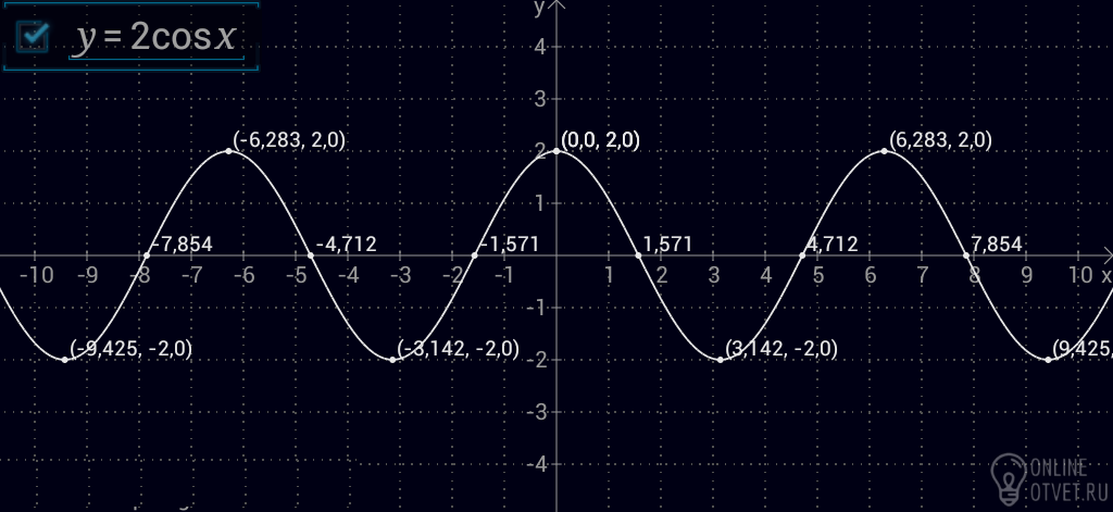 2. Построить график y=2cos 1/2x