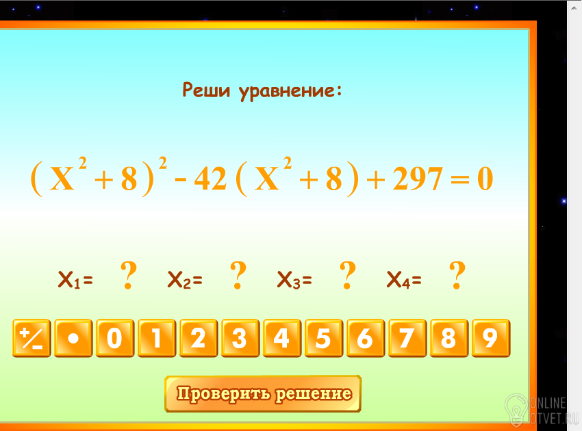 Такие уравнения решаются методом замены переменной.