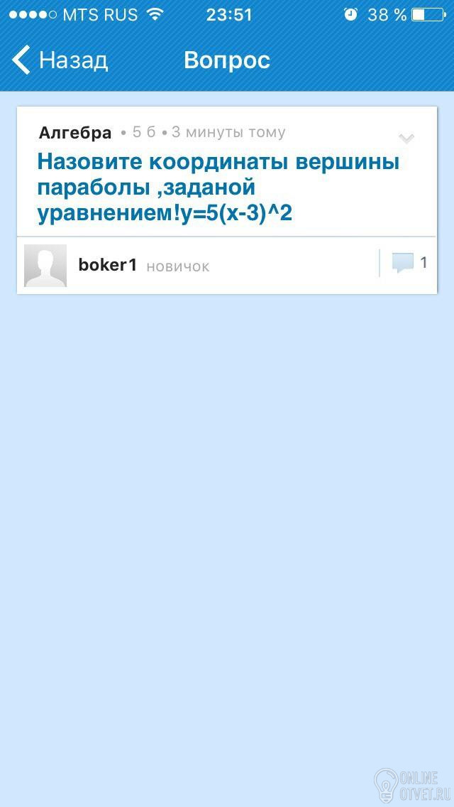 Не нашли подходящего ответа на вопрос или ответ отсутствует? Воспользуйтесь поиском по сайту, чтобы найти все ответы на похожие вопросы в разделе Алгебра.