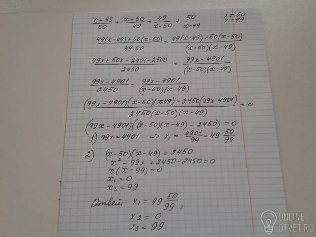 x-49/50 + x-50/49 = 49/x-50 + 50/x-49