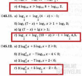log₁/₂(x)+log₁/₂(10-x)≥-1+log₁/₂4,5 ОДЗ: x>0 10-x>0 x<10 x∈(0;10)