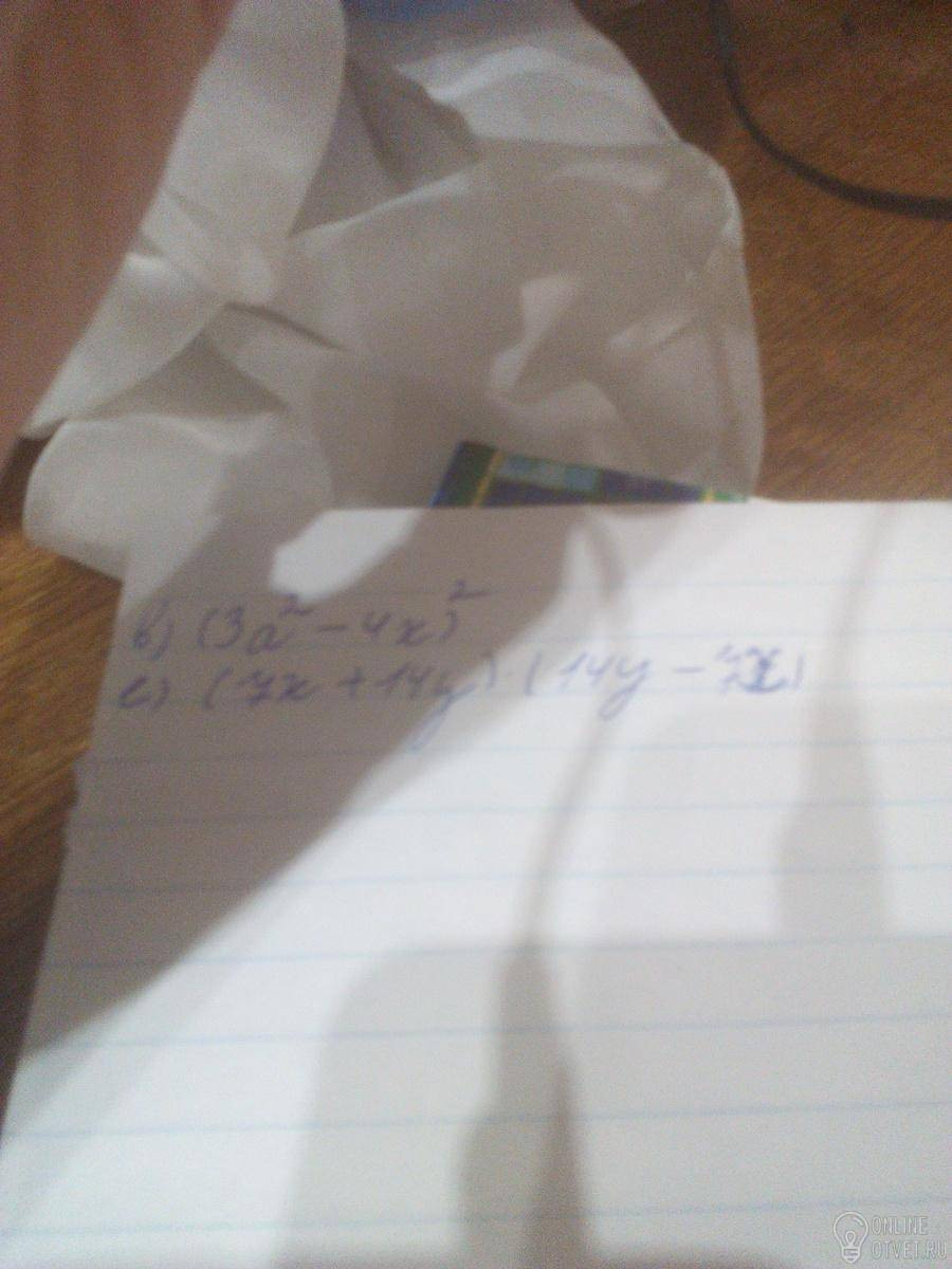 е) (7х + 14у)(14у - 7х) = (14у + 7х)(14у - 7х) = 196у^2 - 48х^2