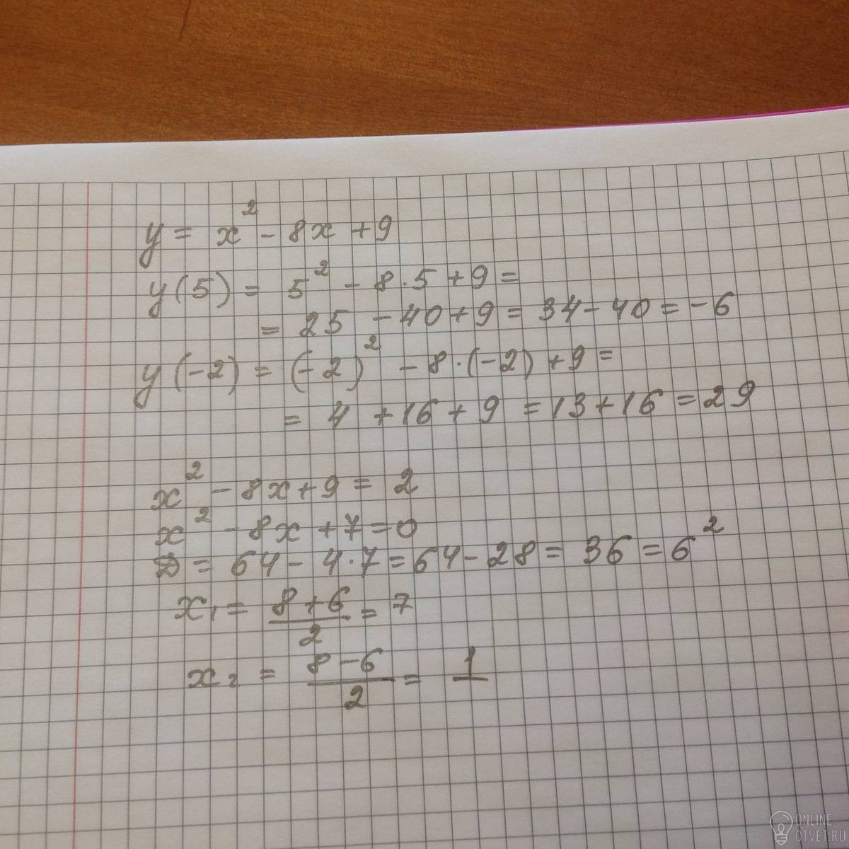 Функция заданная формулой у=х^2 - 8х + 9. Найдите: