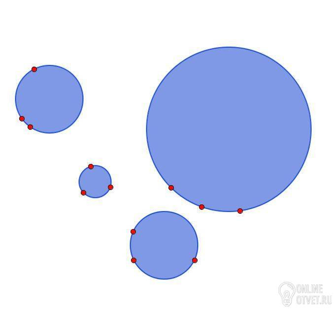 Скільки кіл можна провести через одну , дві , та три точки? Для каждого вопроса один ответ