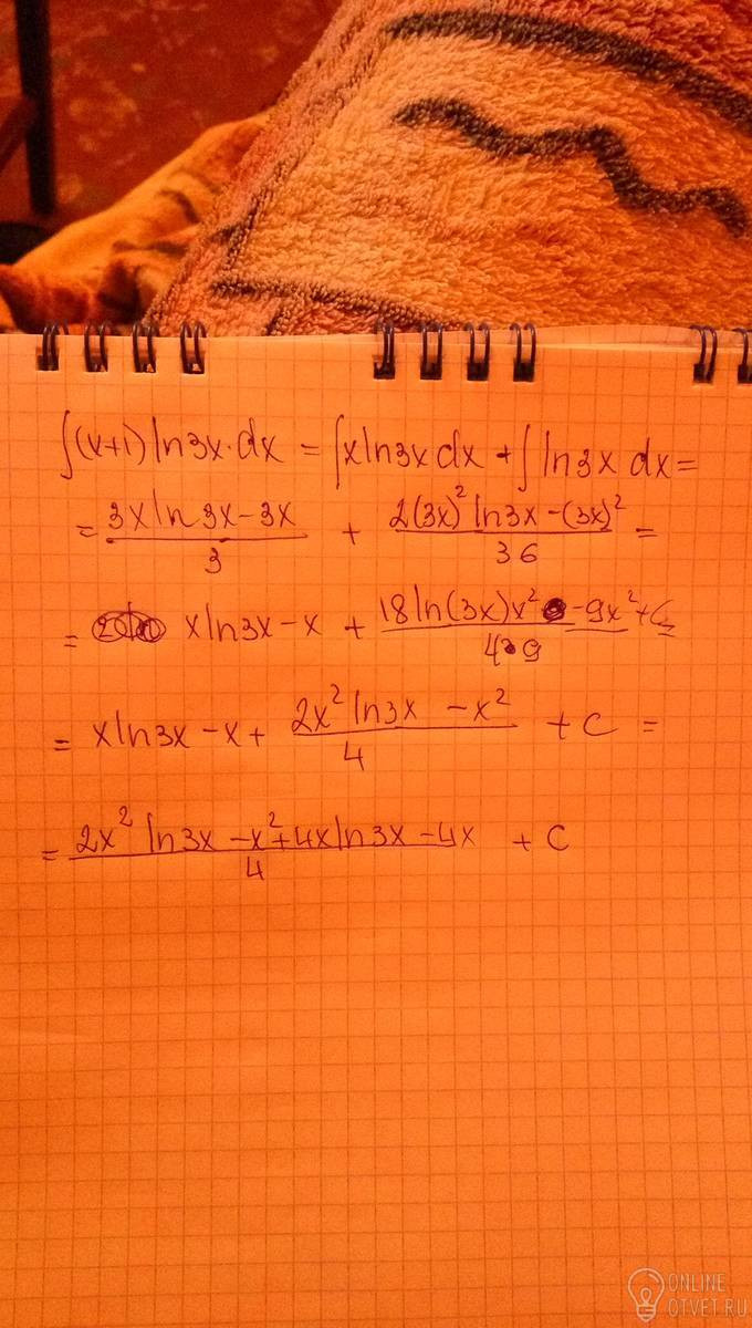 Вычислить неопределенный интеграл методом интегрирования по частям s (x+1)In 3xdx