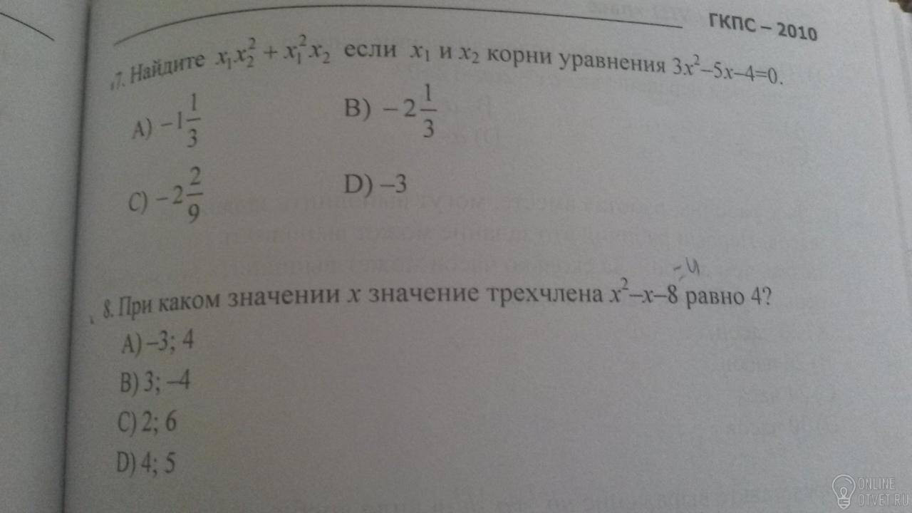 х1+х2=-b/a=5/3