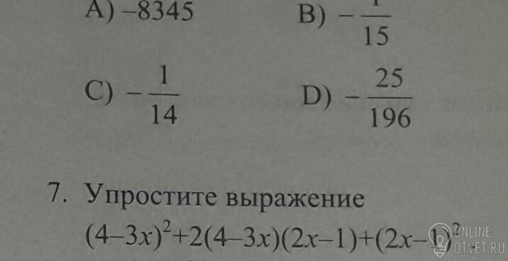 (4-3х)²+2(4-3х)(2х-1)+(2х-1)²=(16-24х+9х²)+2(8х-4-6х²+3х)+(4х²-4х+1)=