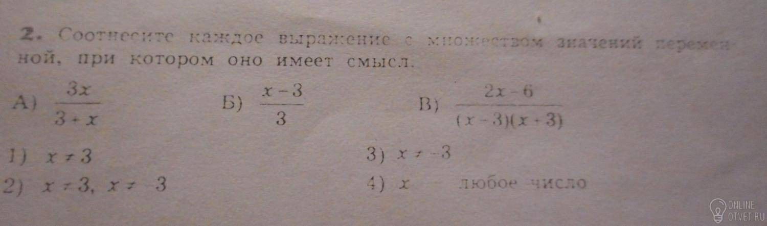 в)х≠3 ;х≠-3 при данных значениях знаменатель равен 0 ,на 0 делить нельзя