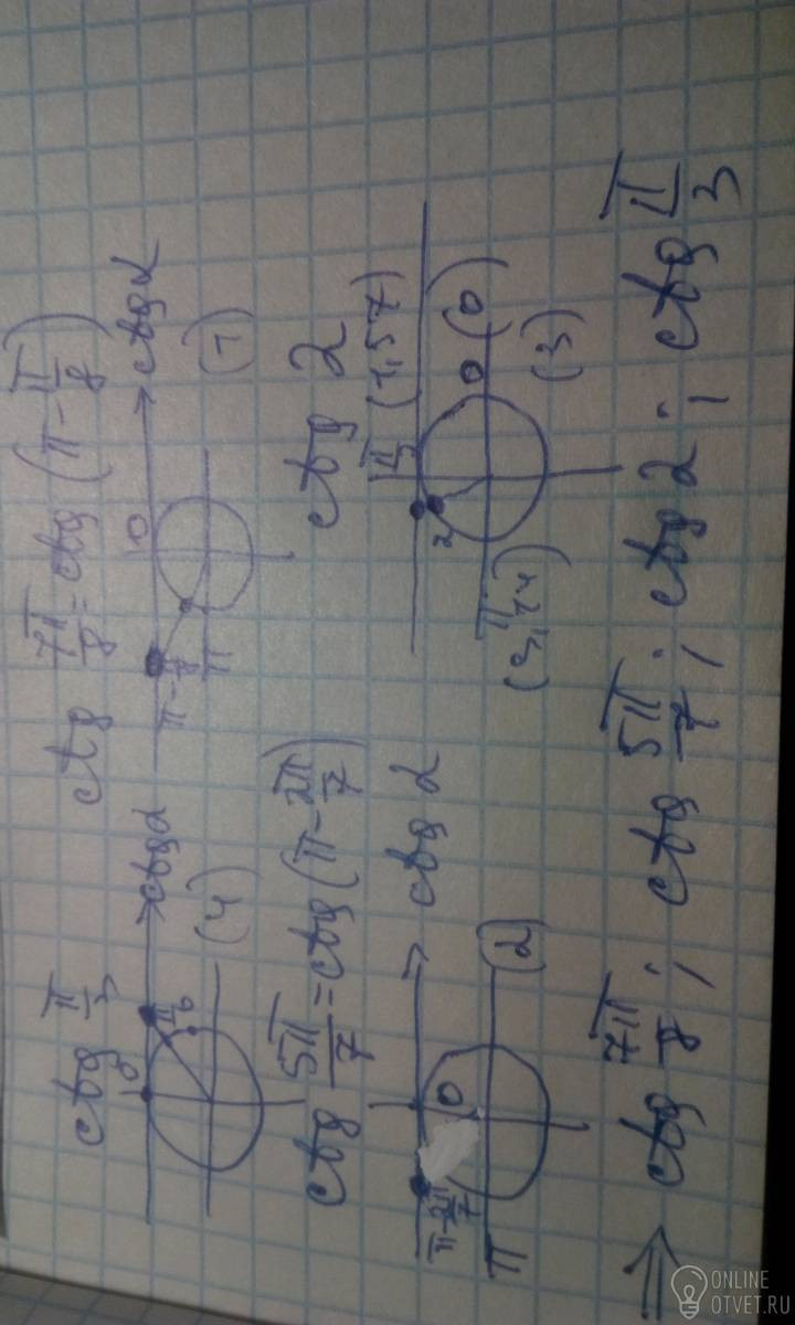 Расположить в порядке возрастания числа: ctg п/3; ctg 7п/8; ctg 5п/7; ctg 2