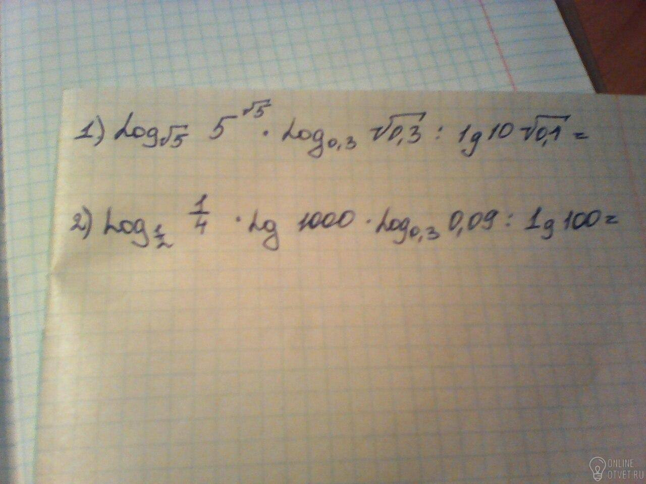 √5log(√5)5*1/2*log(0,3)0,3:1/2lg0,1=√5*2*1/2*1:1/2*(-1)=√5:(-1/2)=-2√5