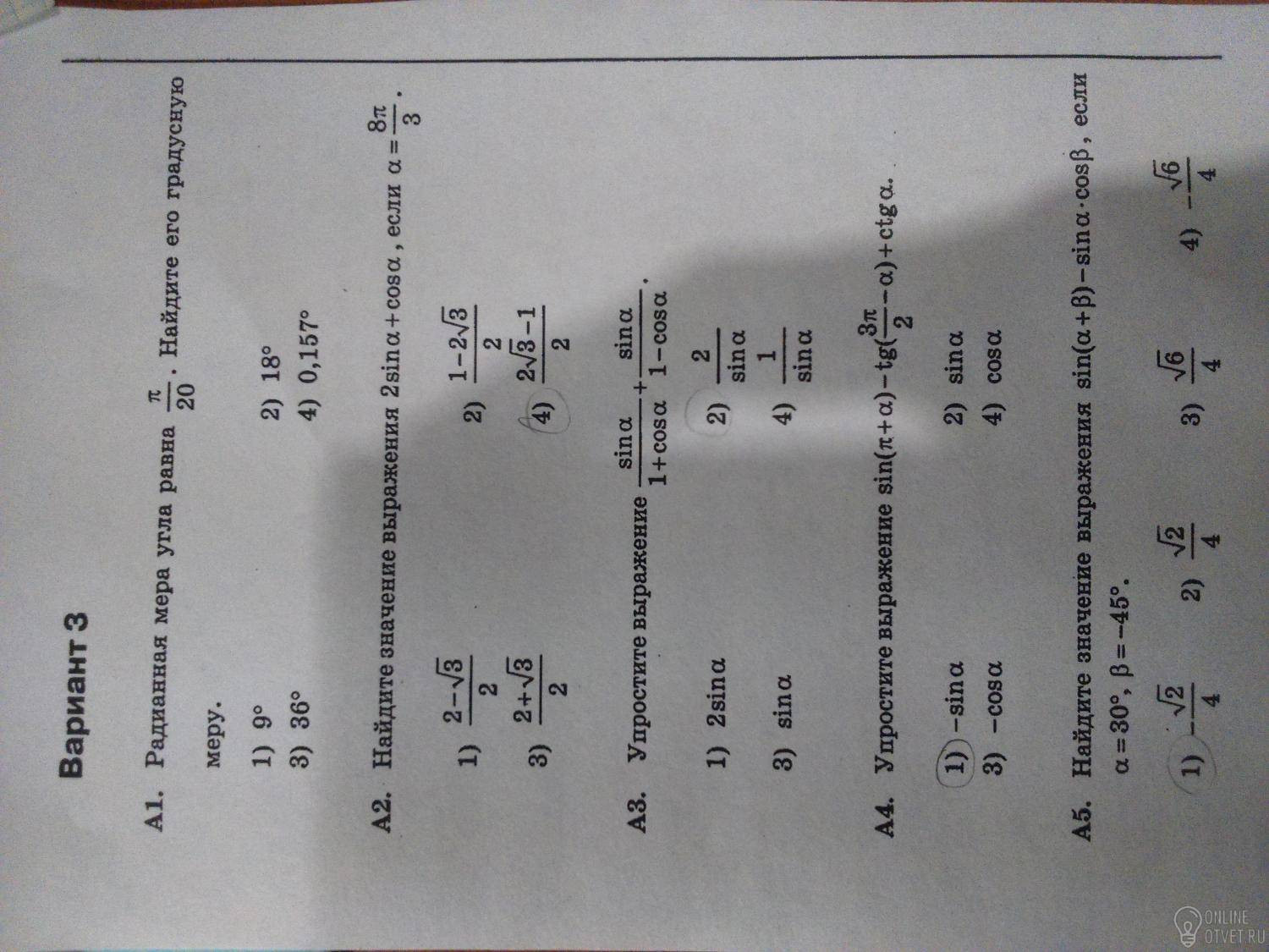 А3: =(sina-sinacosa+sina+sinacosa)/(1-cos^2(a))=(2sina)/(sin^2(a))=2/sina