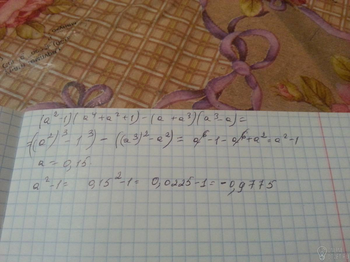 Упростить выражение (a^-1)(a^4+a^2+1)-(a+a^3)(a^3-a) и найти его числовое значение при а=0,15