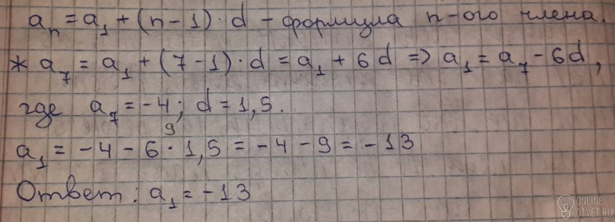 Разность арифметической прогрессии равна 1,5 найти а1. Помогите пожалуйста.