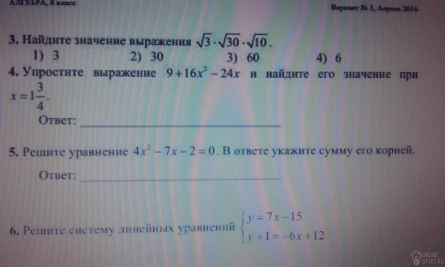 16x^2 - 24x + 9 = (4x-3)^2. 1 и 3/4 = 7/4