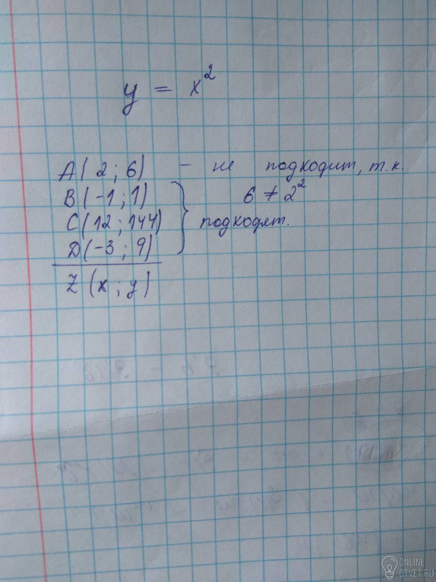 Не строя график функции y=x^2 определить какие точки принадлежат ему