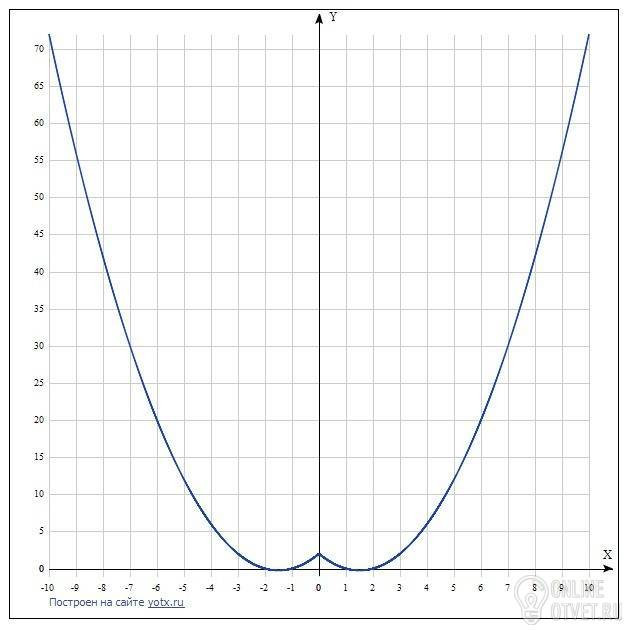 Постройте график функции y=x^2-3|x|+2. Какое наибольшее число общих точек график данной функции может иметь с прямой, параллельной оси абсцисс?