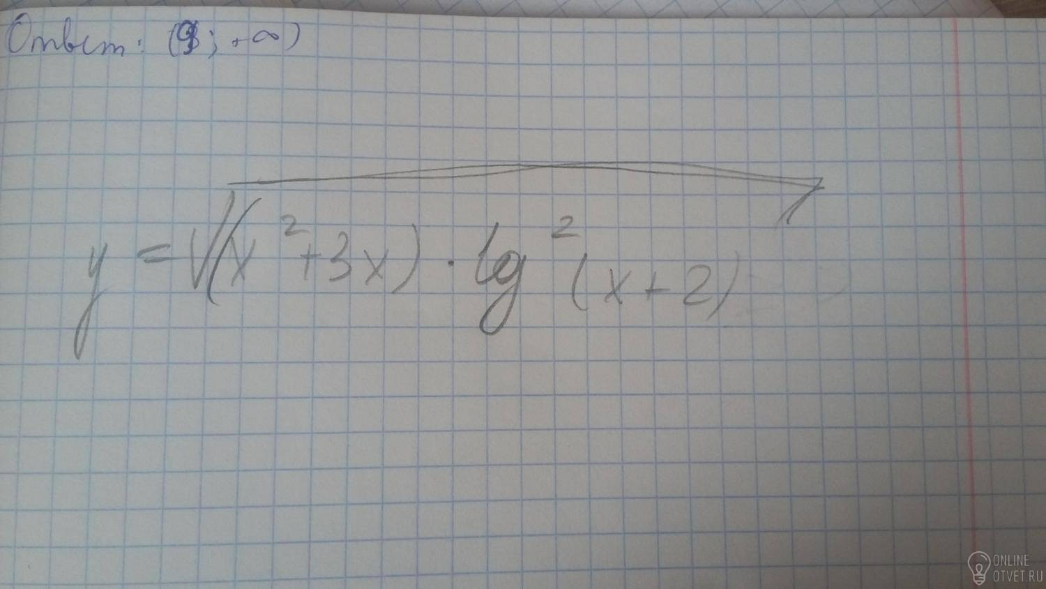 Найдем пересечение множеств, которое и будет областью определения: x ∈ [0;+∞) и отдельный случай, когда х = (-1). т.к. логарифм обращается в 0