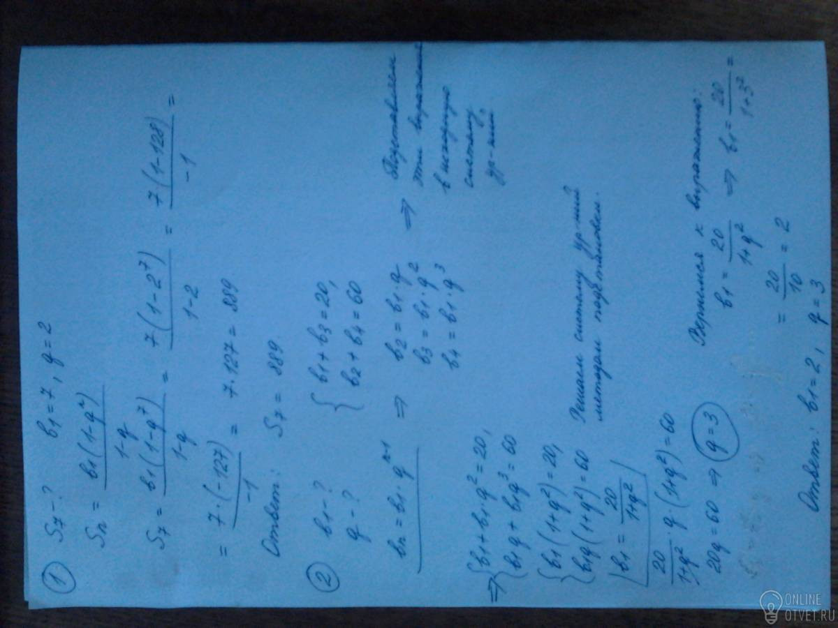 1.Найдите сумму первых семи членов геометрической прогрессии, если b1=7, q=2.