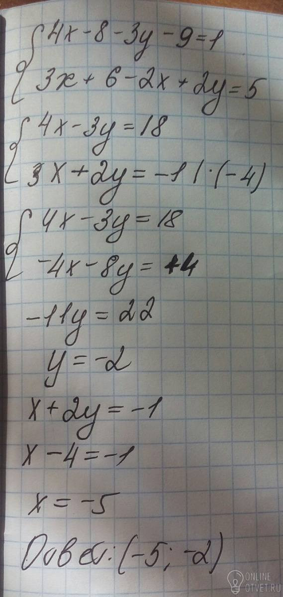 4х-8-3у-9=1,