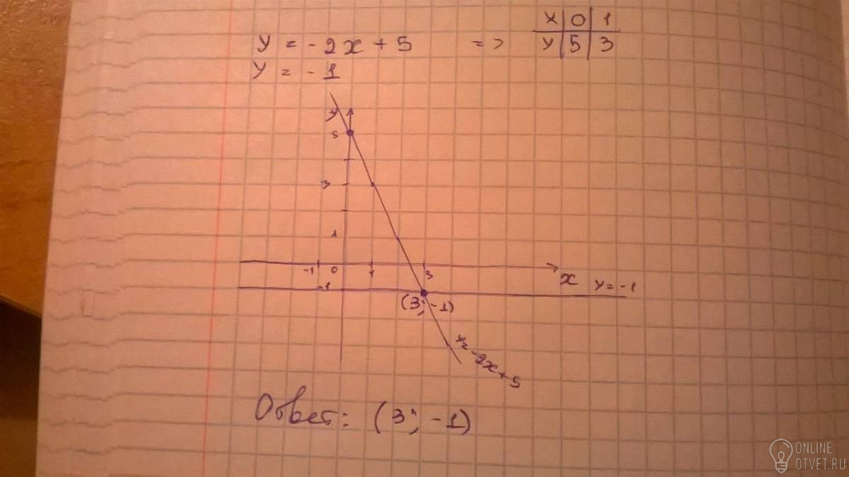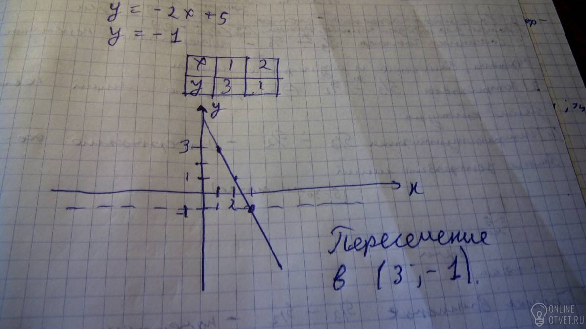 Постройте в одной системе графики функций y = -2x + 5 и y = -1 и найдите координаты точки их пересечения