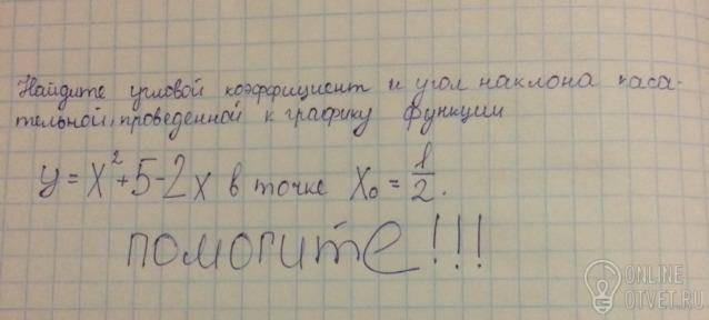 Для того, чтобы найти угловой коэффициент и угол наклона касательной, проведенной к функции в точке, нужно найти производную функции и в нее подставить значение х0.