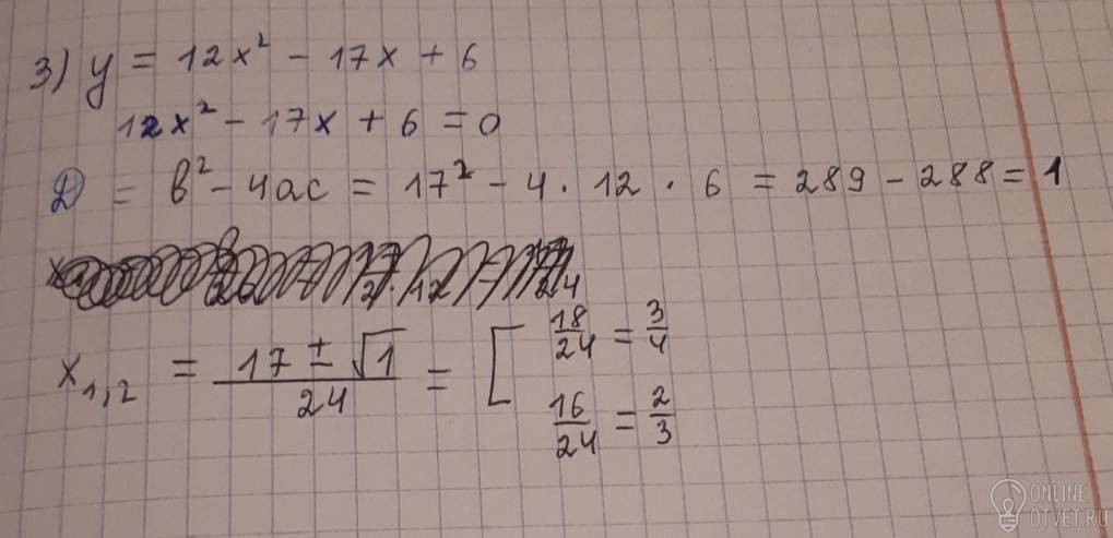 Найти нули квадратичной функции 1)у = х² - х 2) у = х² + 3 3) у= 12 х² -17 х +6