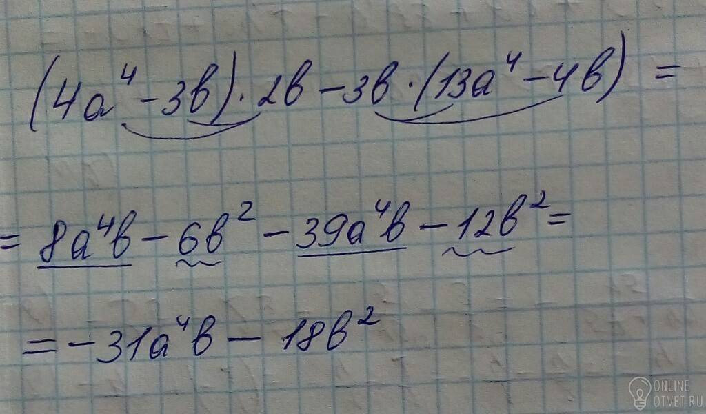 Упрости выражение (4a в 4 степени −3b)⋅2b−3b⋅(13a в 4 степени−4b) срочно 20 баллов