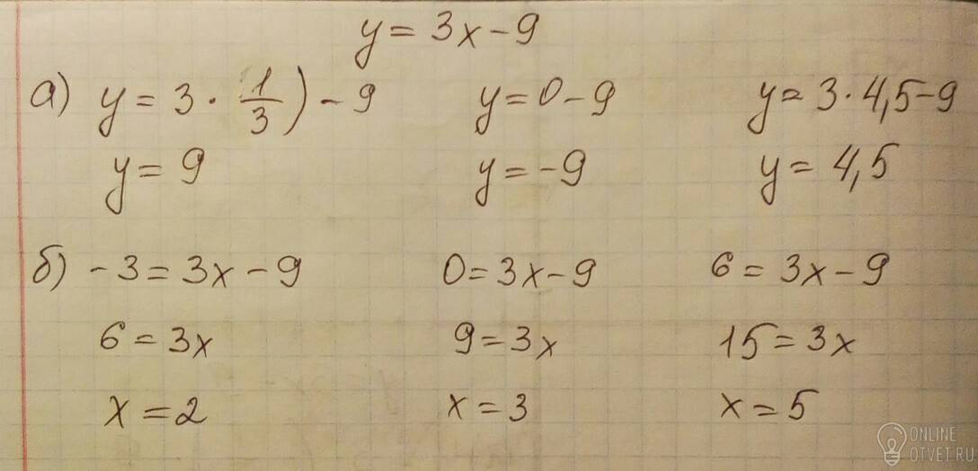 б) значение x, при котором y=-3; 0; 6