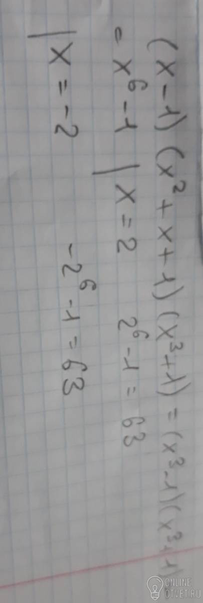 Упростите выражение(x-1)(Xквадрат+x+1)(Xкуб+)+1и найдите его значение при плюсминус 2