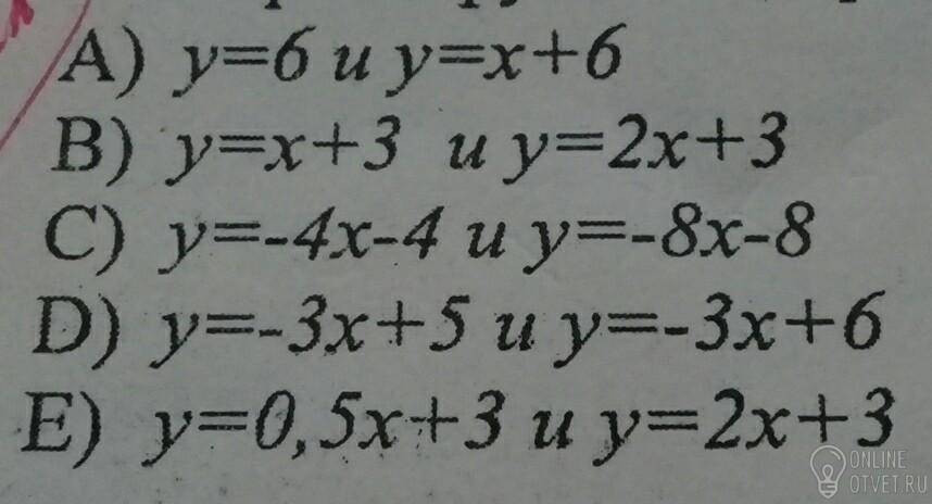 В)у=х+3 у=2х+3 х+3=2х+3 х-2х=3-3 -х=0 х=0