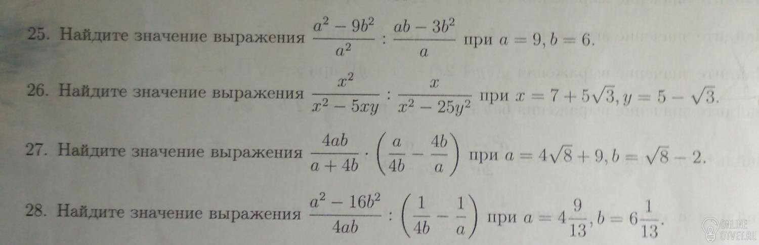 1) переворачиваем там сокращается a и a^2_ a^2-9b^2/a*1/ab-3b^2 _ (a-3b)(a+3b)/a×1/b(a-3b) сокращается a-3b И получается a+3b/a подставляем 9+18/9=3