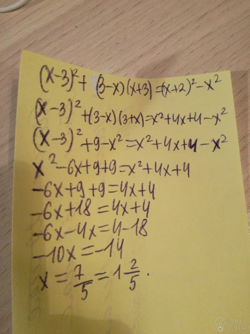 (х-3)^2+(3-х) (х+3)=(х+2)^2-х^2