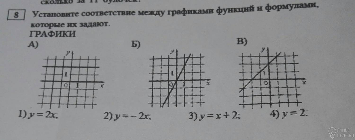 А)4 Б)1 В)3 т.к в А) прямая линия то есть =2 Б) каждый х увеличивает на 2 и В) к каждому х прибавляется 2