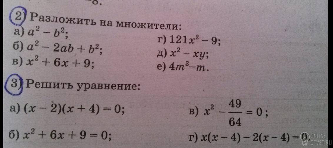 в)x²+6x+9=x²+2*x*3+3²=(x+3)²