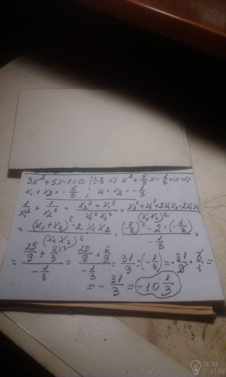 Уравнение 3х^2+5х-1=0 имеет корни х1 и х2 найдите величину 1/х1^2+1/х2^2