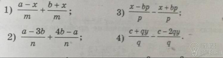 1) (а-х)/м+(в+х)/м=(а-х+в+х)/м=(а-в)/м